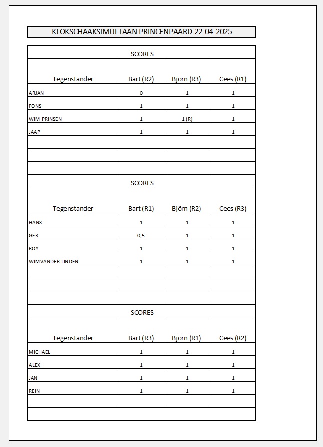 Uitslagen - Schaakvereniging Princenpaard te Breda