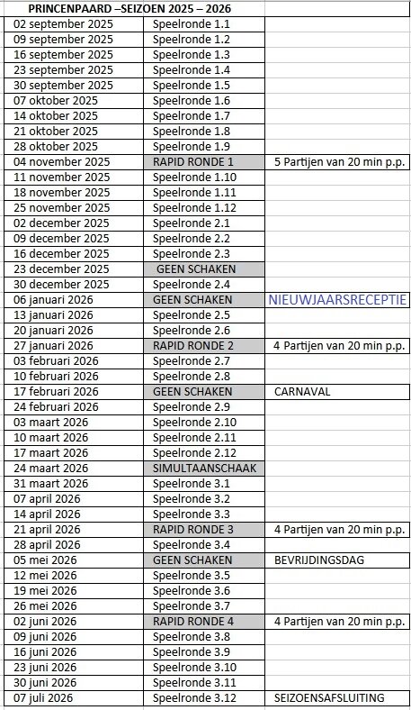 Competitiekalender - Schaakvereniging Princenpaard te Breda